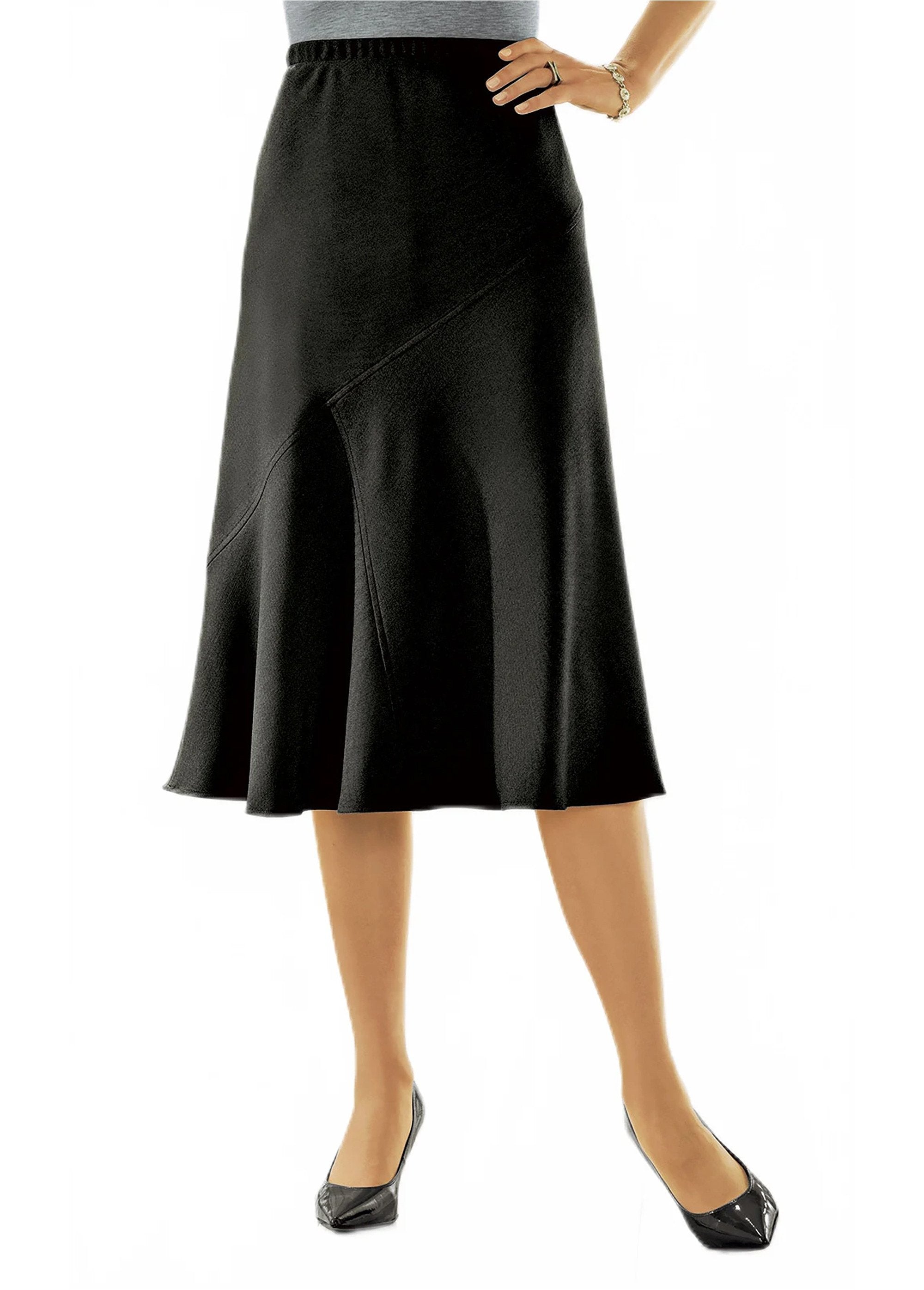 A stylish skirt. Made from a stretchy fabric that combines softness and ease of maintenance, with asymmetrical topstitched cuts on the front and back. Elasticated waistband.