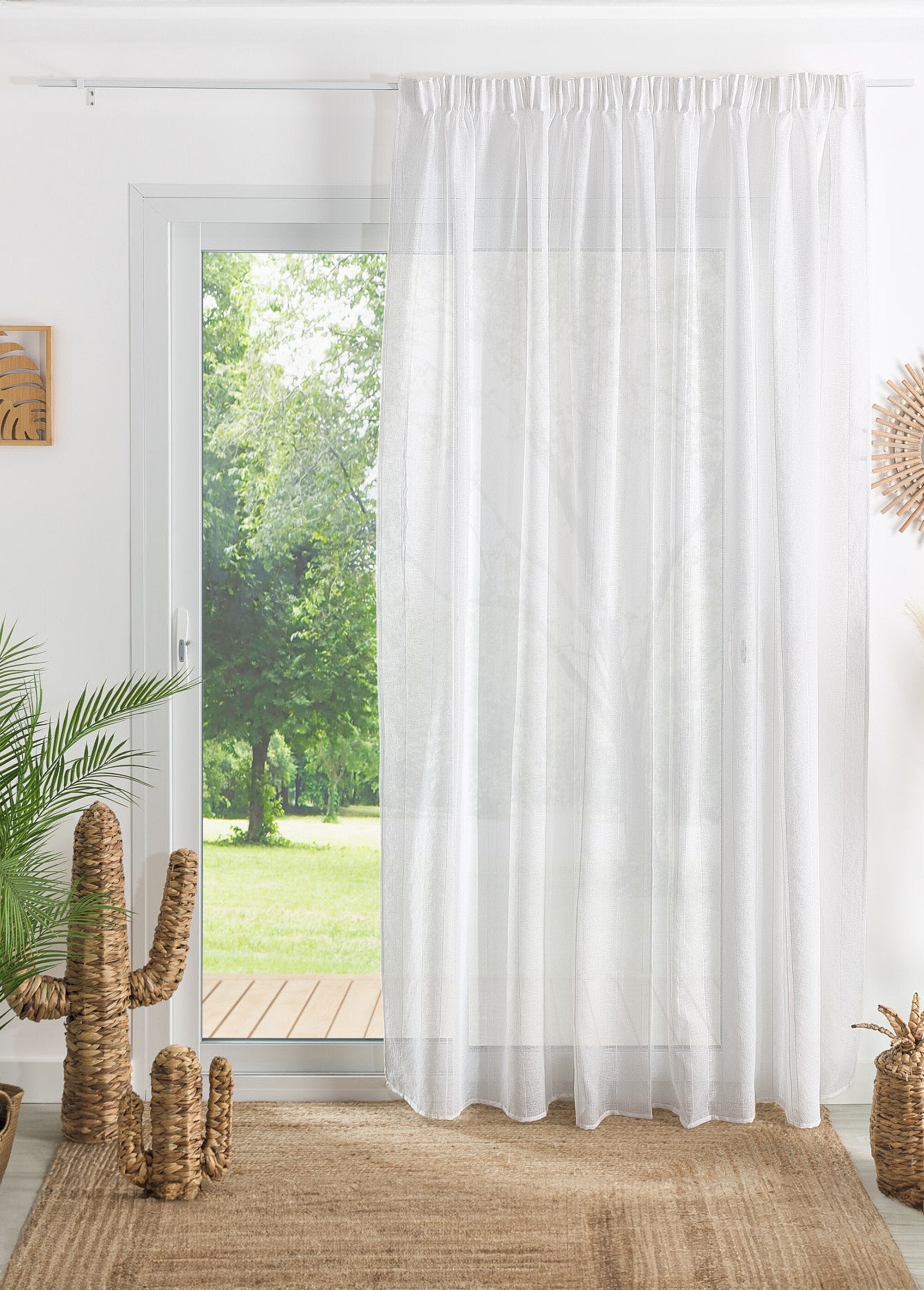 With a gathered braid, this sheer curtain stands out with its fine woven lines, offering a natural look and a perfect drape. It skillfully plays with transparencies, allowing you to enjoy ambient light while preserving your privacy. This contemporary style blends harmoniously into various decors, bringing a touch of elegance and sophistication. Transform your spaces with these sheer curtains that combine aesthetics and functionality!